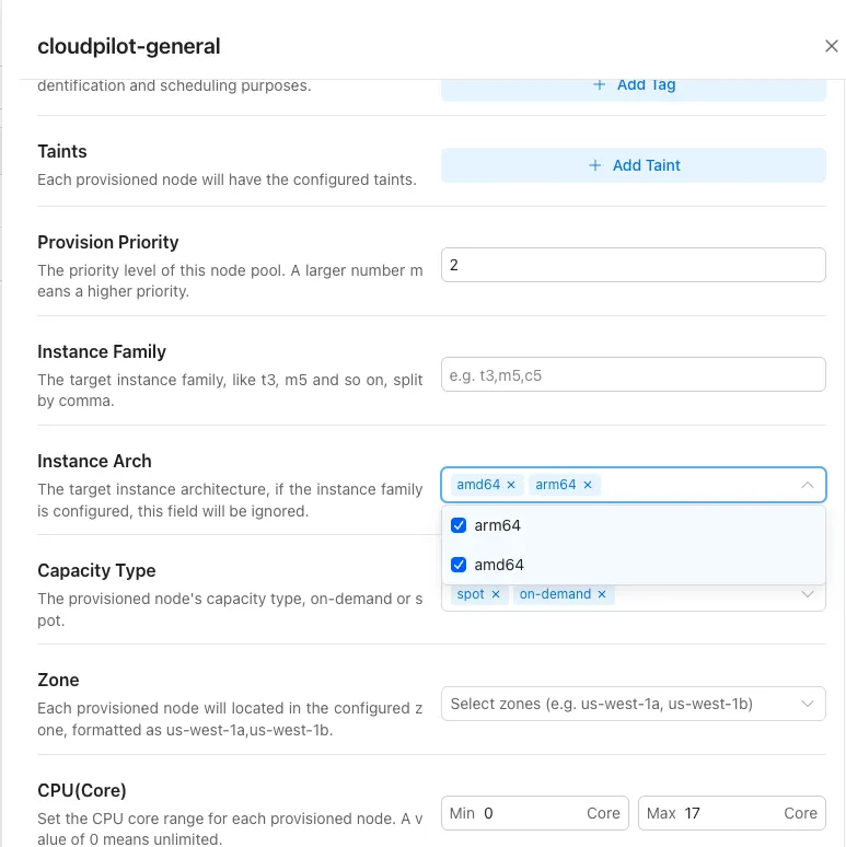 - ワンクリック有効化: CloudPilot AIコンソールで、顧客はマルチアーキテクチャノードプールを即座に有効にできます。