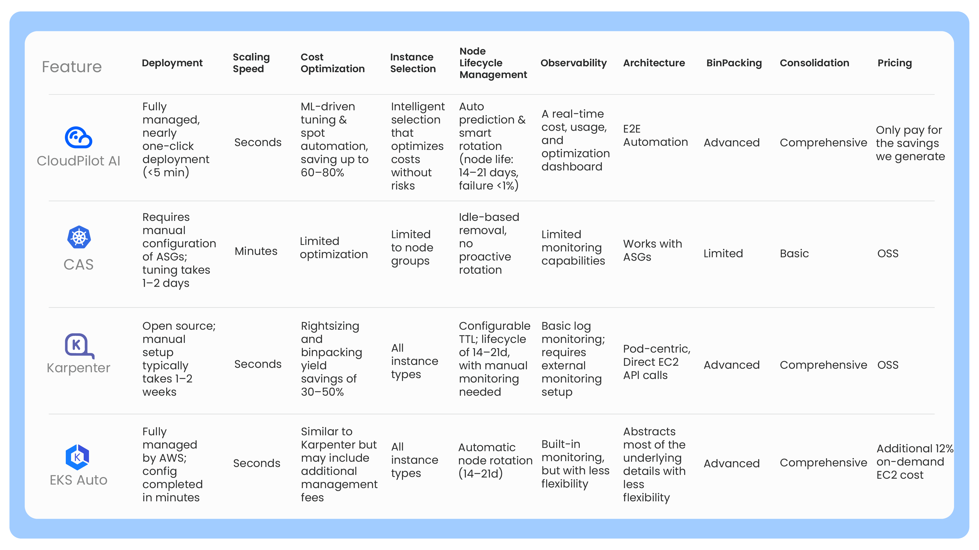ここでCloudPilot AIがKarpenterベースのセットアップを強化します。Karpenterのプロビジョニング決定と直接統合することで、CloudPilot AIは以下を提供します: